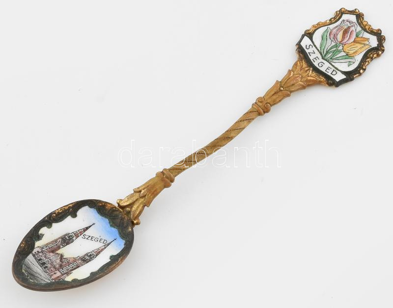 Szeged zománcfestett fém emlék kanál. Kézzel festett 14 cm https://www.darabanth.com/hu/447-Gyorsarveres/447.0/Mutargy-papirregiseg-egyeb/Bolhapiac~2000103/Szeged-zomancfestett-fem-emlek-kanal-Kezzel-festett-14-cm~II2963764