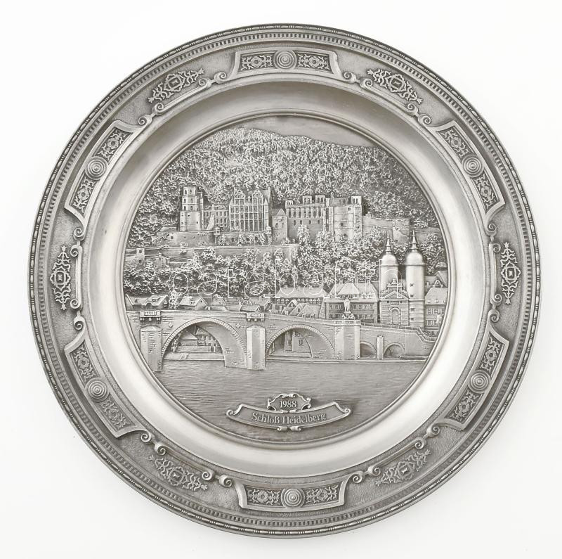 WMF Heidelbergi kastély ón falitál, jelzéssel, hibátlan, d: 23 cm https://www.darabanth.com/hu/447-Gyorsarveres/447.0/Mutargy-papirregiseg-egyeb/Bolhapiac~2000103/WMF-Heidelbergi-kastely-on-falital-jelzessel-hibatlan-d-23-cm~II2955916
