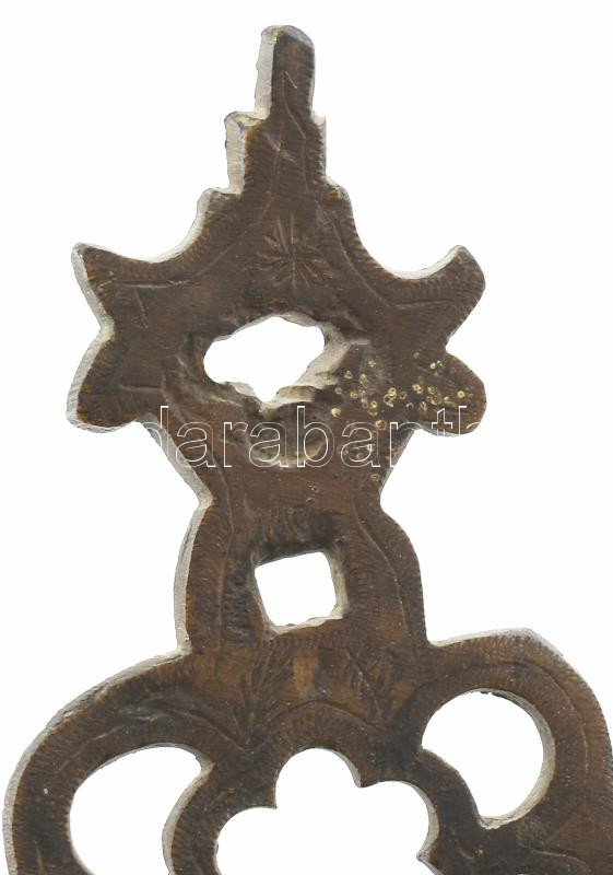 Leírás: Antik hanukiah, XIX. sz., bronz, 20x14 cm
