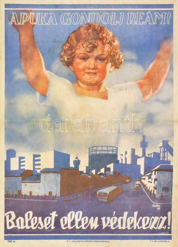 1940 Hollós Endre (1907-?): Apuka gondolj reám! Baleset ellen védekezz... https://www.darabanth.com/hu/447-Gyorsarveres/447.0/Mutargy-papirregiseg-egyeb/Plakat~1500007/1940-Hollos-Endre-1907-Apuka-gondolj-ream-Baleset-ellen-vedekezz-OTI-plakat-restauralt-~II2961749
