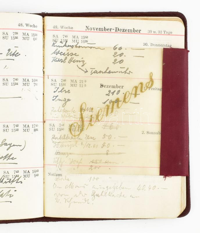 1939 Siemens Taschen Kalender, német nyelvű zsebnaptár / notesz, bejeg... https://www.darabanth.com/hu/447-Gyorsarveres/447.0/Mutargy-papirregiseg-egyeb/Reklam~2000113/1939-Siemens-Taschen-Kalender-nemet-nyelvu-zsebnaptar-notesz-bejegyzesekkel~II2956224