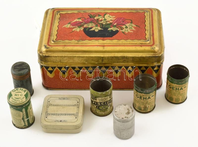Leírás: Fém dobozok, haltáp, teás, filmes