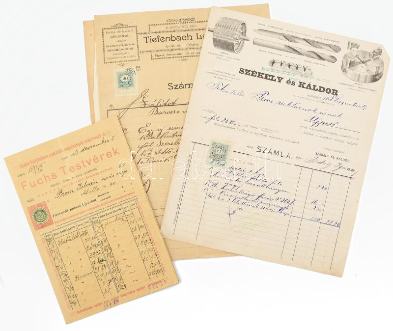 Leírás: cca 1890-1900 7 db nagyrészt építőipari fejléces számla.