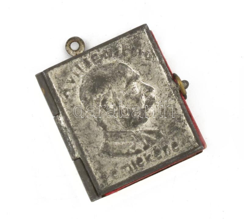1914. Ferenc József : Népeimhez! . Minikönyv medál dombornyomott fém borítóval, "A király szózata a nemzethez 1914 július 28-án. az I. világháború kitörésekor) (24x22mm)