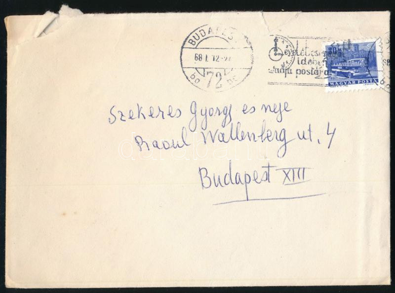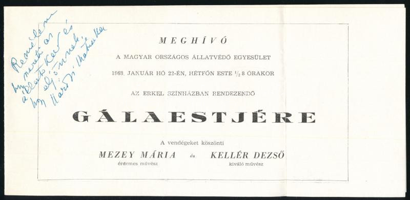 1968 Károlyi Mihályné Andrássy Katinka (1892-1985) saját kezű sorai egy gálaestre szóló meghívón Szekeres György (1914-1973) újságíró, műfordító, később az Európa Kiadó főszerkesztője és felesége részére, borítékkal, saját kezű aláírásával