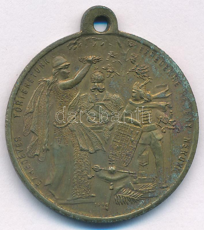Leírás: 1896. "Ezredéves Történetünk Ezredekre Remény Nekünk - Honfoglalás" millenniumi bronz emlékérem füllel. Szign.: Steiner A. (32,5mm) T:XF patina