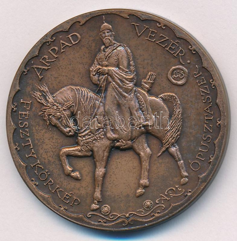 Leírás: Lapis András (1942-) ~1990. "Árpád vezér - Feszty körkép - Ópusztaszer / Verecke útján" bronz emlékérem (42,5mm) T:UNC,AU