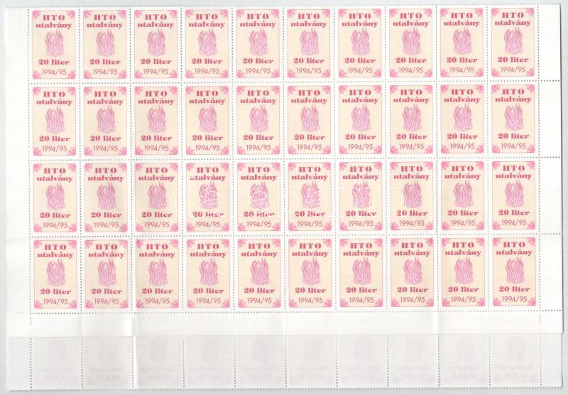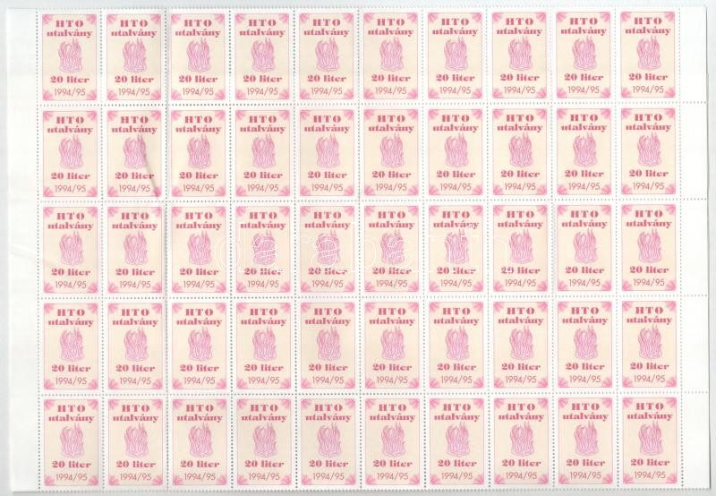 Leírás: 1993-1994. "HTO (Háztartási Tüzelőolaj) utalvány - 20 liter" (90x) egy nagy ívtömbben, ívszéllel T:UNC,AU