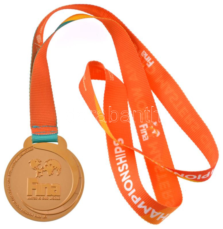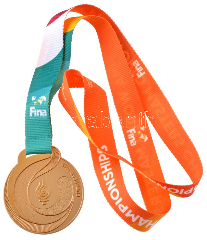 2017. "FINA Masters World Championships Budapest-Balatonfüred" double-sided, gilt bronze award medal on original ribbon (64mm) C:UNC