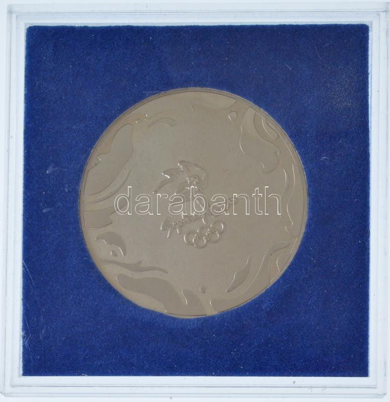 Ausztrália 2000. "THE GAMES OF THE XXVII OLYMPIAD / SYDNEY 2000" kétoldalas, ezüstözött olimpiai emlékérem, műanyag tokban (50mm) T:PP
