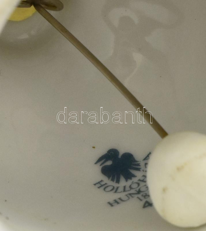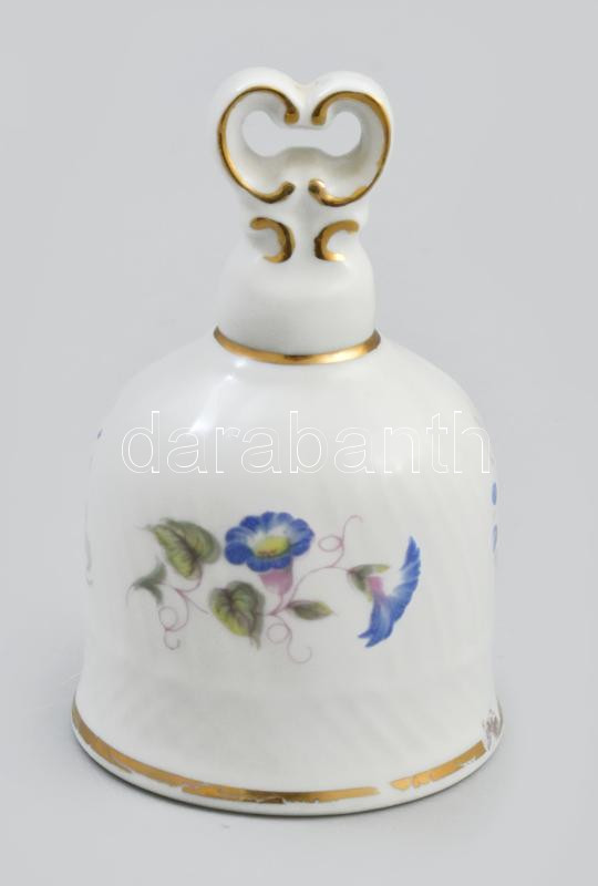 Leírás: Hollóházi csengő, matricás porcelán, jelzett, kopott, m: 9cm