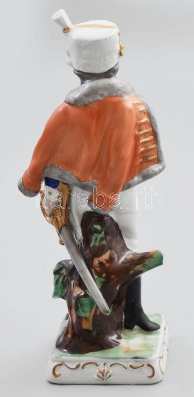 Leírás: Német porcelán brandenburgi huszár figura, jelzéssel, hibátlan, m: 20 cm