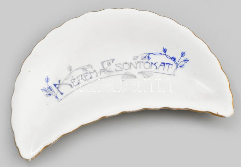 Leírás: Zsolnay csontos tál, "Kérem a csontokat" felirattal, jelzéssel, kopással, 17,5x11 cm