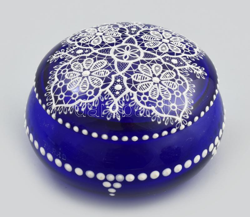 Leírás: Parádi üveg bonbonniere, kézzel festett, hibátlan 9 cm