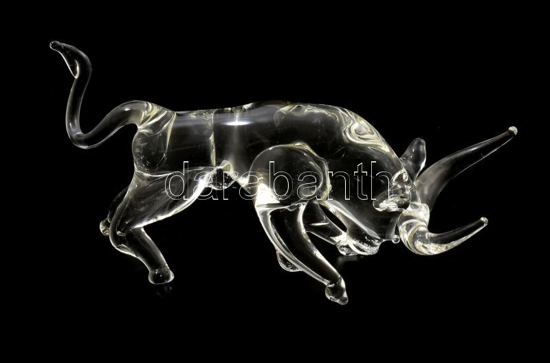 Leírás: Támadó bika figura. Kézzel készített üveg. 10 cm