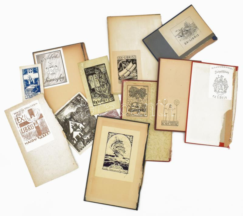 Leírás: 11 db vegyes ex libris, részben könyvborítókon