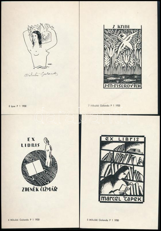 [Galanda, Mikuláš (1895-1938)]: Exlibrisy Mikuláša Galandu. (Erotikus ex librisek). Bratislava, 1970, k.n., 4 sztl. lev. + 38 (fekete-fehér és színes reprodukciók) t. Kiadói mappában, 15x10,5 cm.