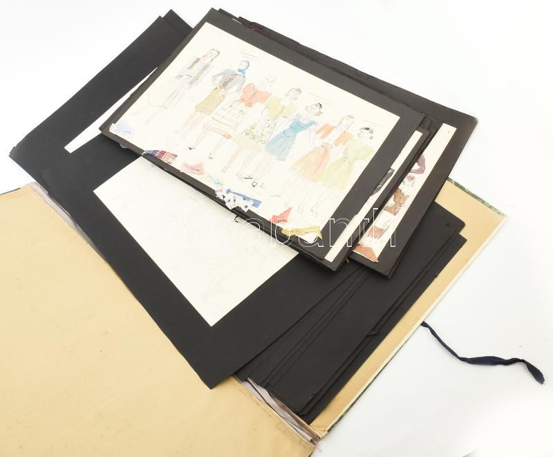 Olvashatatlan (részben Heltai?) jelzéssel: össz. 20 db jelmezterv. Akvarell, tus, ceruza, papír, részben datált (1983) és 10 db szövetmintával, egy kivételével kartonra kasírozva. 30x43 cm (15 db) és 24x54 cm (5 db) körüli méretekben