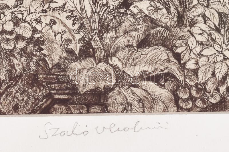 Leírás: Szabó Vladimír (1905-1991): Juhnyáj. Rézkarc, papír, utólagos jelzéssel, üvegezett fakeretben, 35×50 cm
