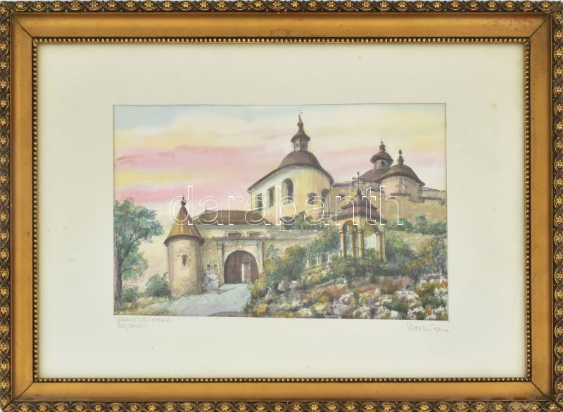 Leírás: Detzky Júlia: Krasznahorka vára. Akvarell, papír, jelzett üvegezett keretben 20x28 cm