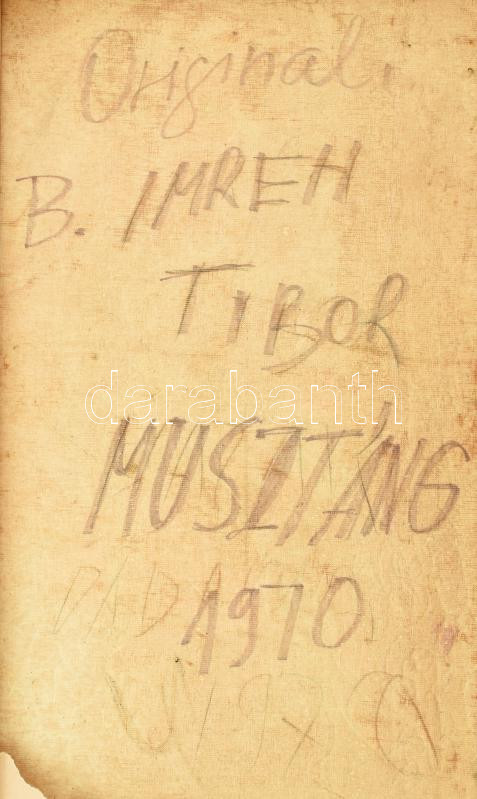 Imreh Tibor (1952-2010): Musztáng, 1970. Olaj, vászon, jelezve jobbra ... https://www.darabanth.com/hu/448-Gyorsarveres/448.0/Festmenyek-es-grafikak/Festmenyek-es-grafikak~1000001/Imreh-Tibor-1952-2010-Musztang-1970-Olaj-vaszon-jelezve-jobbra-lent-Hatoldalan-autograf~II2969087