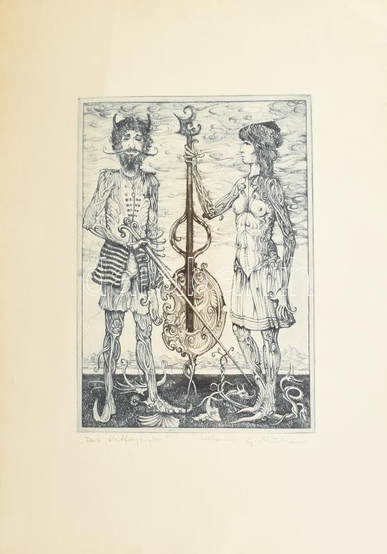 Kolozsvári Grandpierre Miklós (1950- ): Csigalovász. Színes rézkarc, papír. Jelzett. Törésnyommal, lap szélén apró szakadással és kisebb folttal, 35x24 cm