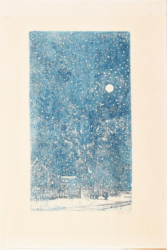 László Gyula (1910-1998): Hóesés. Rézkarc, papír, jelzett, 30×17,5 cm https://www.darabanth.com/hu/448-Gyorsarveres/448.0/Festmenyek-es-grafikak/Festmenyek-es-grafikak~1000001/Laszlo-Gyula-1910-1998-Hoeses-Rezkarc-papir-jelzett-30C39717-5-cm~II2965657