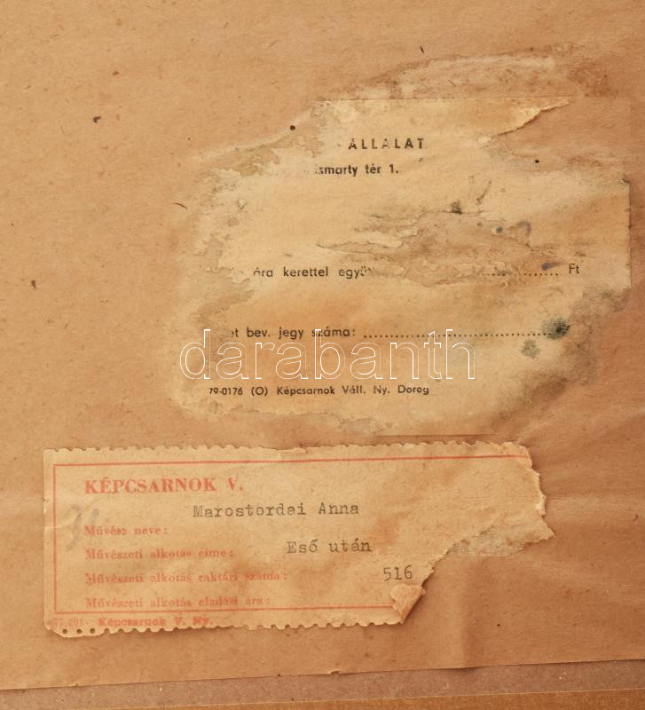 Marostordai Anna (1920-1999): Eső után. Vegyes technika, papír, jelzet... https://www.darabanth.com/hu/448-Gyorsarveres/448.0/Festmenyek-es-grafikak/Festmenyek-es-grafikak~1000001/Marostordai-Anna-1920-1999-Eso-utan-Vegyes-technika-papir-jelzett-hatoldalan-Kepcsarnok~II2966074