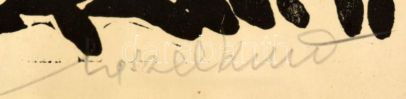 Leírás: Maszelka János (1929-2003): "Szajka" (Erdély), 1990. Linómetszet, papír, jelzett, üvegezett fakeretben, 29×42 cm