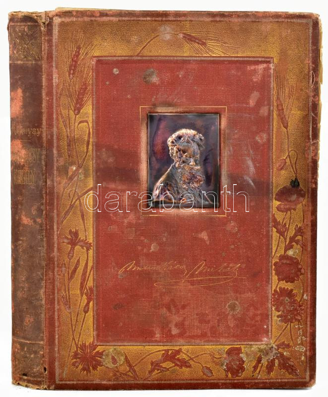 Munkácsy Mihály (1844-1900): Konyhában c. egyetlen rézkarcával, papír, jelzett a karcon, 20×28 cm. In: Malonyay Dezső: Munkácsy Mihály élete és munkái. Bp., 1898, Singer és Wolfner, (Hornyánszky-ny.), 8+235+1+8 p.+24 t. Első kiadás. Szövegközti és egészoldalas képekkel gazdagon illusztrálva. Kiadói dúsan aranyozott egészvászon-kötés, Munkácsy Mihályt ábrázoló fém plakettel, aranyozott felső lapélekkel, kopott, foltos borítóval, kijáró lapokkal, régi intézményi bélyegzésekkel, megviselt állapotban. De maga a rézkarc csak kis foltokkal, a hátán bélyegzéssel.
