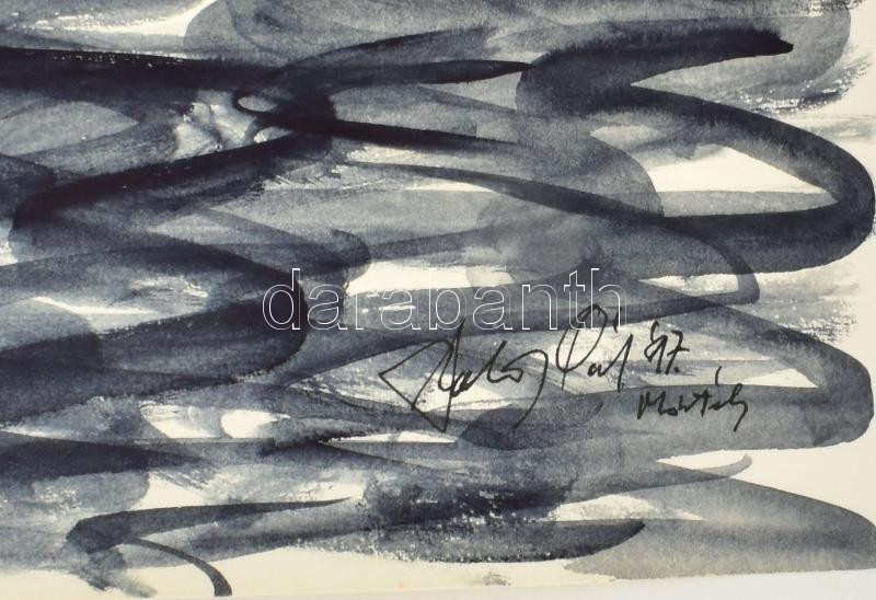 Leírás: Szalay Pál (1953-2015): Mártély (Tisza), 1997. Akvarell, papír. Jelzett. Lap teteje papírra kasírozva. 43x31 cm
