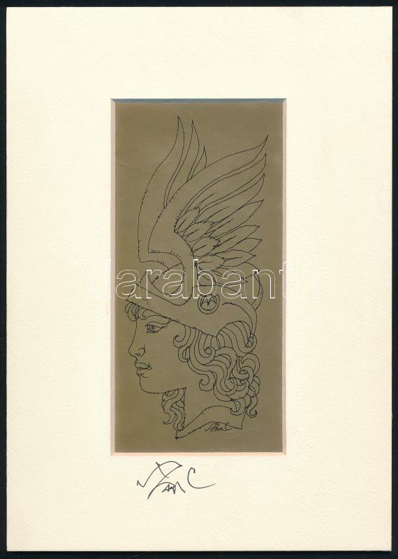 Leírás: Szász Endre (1926-2003): Fejdíszes hölgy. Szitanyomat, papír, jelzett a nyomaton és autográf aláírt 13,5x6,5 cm Paszpartuban