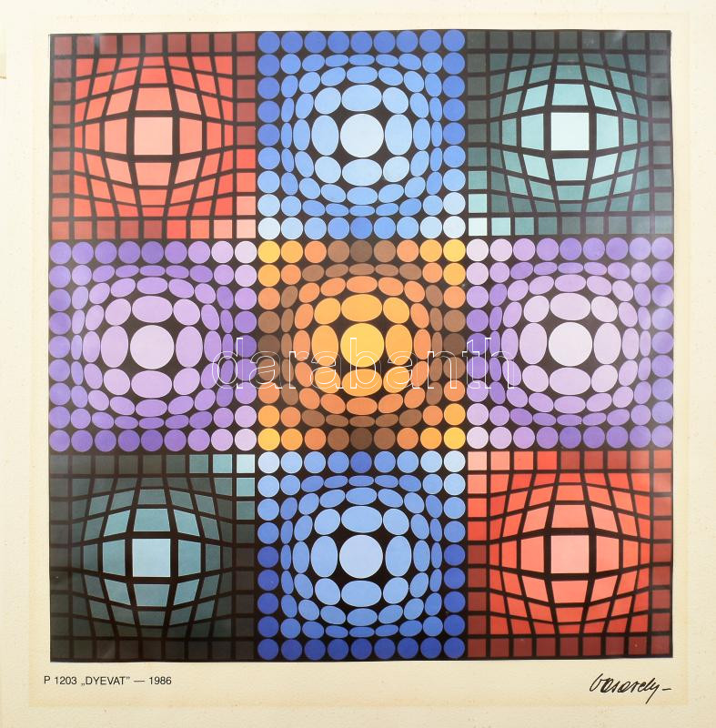 Vasarely Victor (1908-1997): Dyevat. Ofszet, papír, papírra rögzítve, ... https://www.darabanth.com/hu/448-Gyorsarveres/448.0/Festmenyek-es-grafikak/Festmenyek-es-grafikak~1000001/Vasarely-Victor-1908-1997-Dyevat-Ofszet-papir-papirra-rogzitve-jelzett-a-nyomaton-37x37-~II2967055