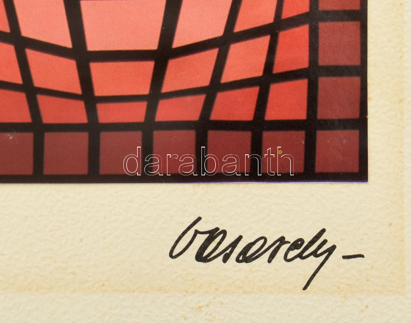 Leírás: Vasarely Victor (1908-1997): Dyevat. Ofszet, papír, papírra rögzítve, jelzett a nyomaton, 37x37 cm