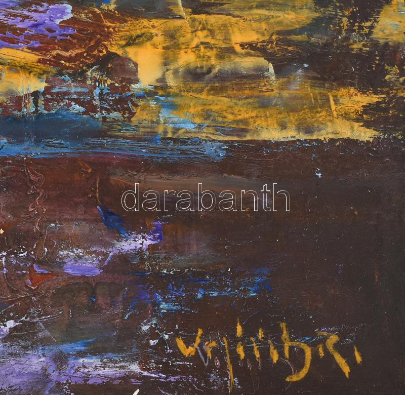 Leírás: Vojnits Richárd (1942-): Piactér. Olaj, farost, jelzett. Fakeretben, 40×60 cm