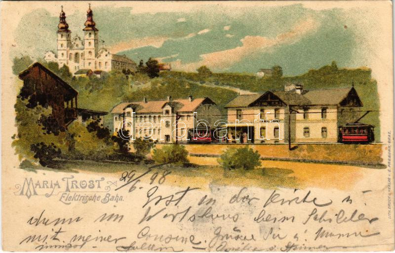 1898 (Vorläufer) Mariatrost (Graz, Steiermark), Elektrische Bahn / tra... https://www.darabanth.com/hu/448-Gyorsarveres/448.0/Kepeslapok/Ausztria~1500020/1898-Vorlaufer-Mariatrost-Graz-Steiermark-Elektrische-Bahn-tramway-station-basilica-litho~II2973720