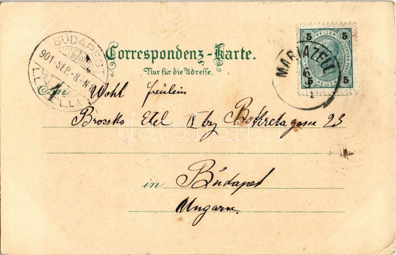 Leírás: 1901 Mariazell, Heiligenbrun / night. Hans Nachbargauer Art Nouveau, floral, litho (EK)