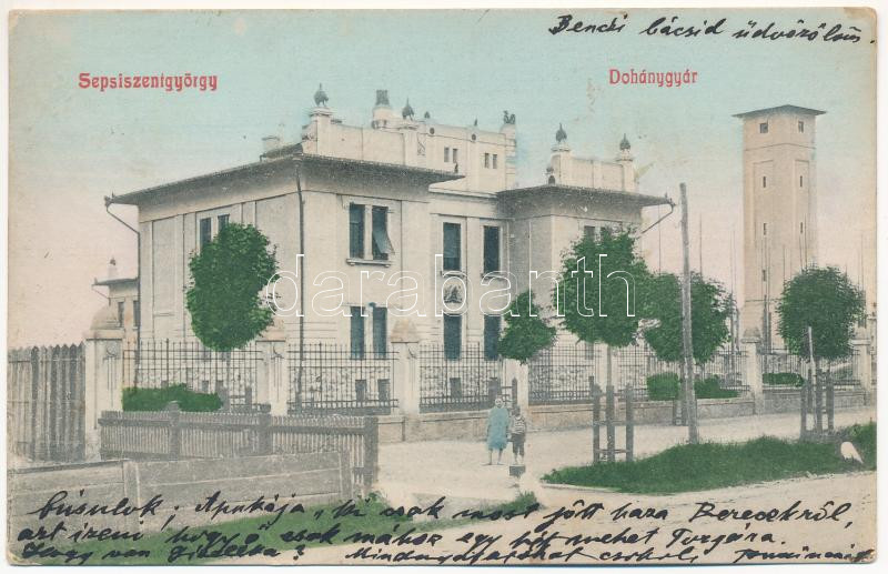 1903 Sepsiszentgyörgy, Sfantu Gheorghe; Dohánygyár. Klein Jenő kiadása... https://www.darabanth.com/hu/448-Gyorsarveres/448.0/Kepeslapok/Erdely~1500006/1903-Sepsiszentgyorgy-Sfantu-Gheorghe-Dohanygyar-Klein-Jeno-kiadasa-tobacco-factory-EK~II2961688