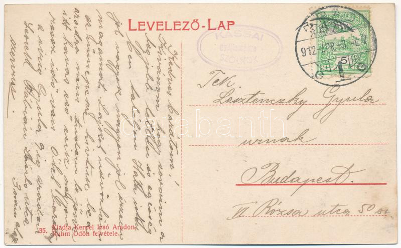 Leírás: 1912 Arad, Boros Béni téri részlet, emeletes autóbusz, gazdasági Gépraktár. Kerpel Izsó kiadása, Ruhm Ödön felvétele / square, double-decker autobus