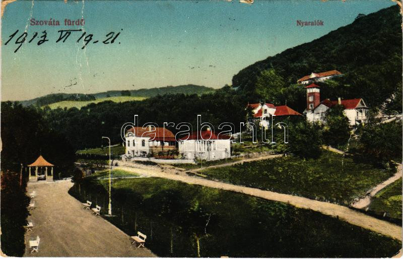 Leírás: 1913 Szovátafürdő, Baile Sovata; nyaralók. Schuster Emil kiadása / villas (Rb)