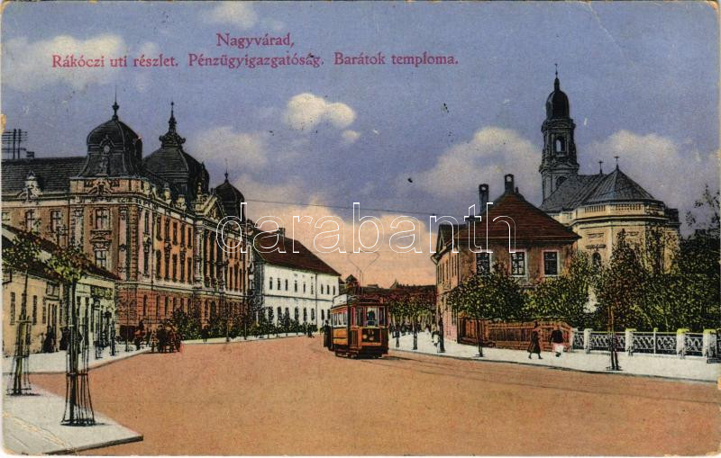 1914 Nagyvárad, Oradea; Rákóczi út, Pénzügyigazgatóság, Barátok templo... https://www.darabanth.com/hu/448-Gyorsarveres/448.0/Kepeslapok/Erdely~1500006/1914-Nagyvarad-Oradea-Rakoczi-ut-Penzugyigazgatosag-Baratok-temploma-villamos-street~II2860493