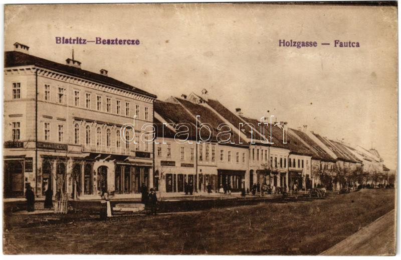 1918 Beszterce, Bistritz, Bistrita; Fa utca, Kollmann & Keresztes ... https://www.darabanth.com/hu/448-Gyorsarveres/448.0/Kepeslapok/Erdely~1500006/1918-Beszterce-Bistritz-Bistrita-Fa-utca-Kollmann-Keresztes-uzlete-F-Stolzenberg-kiadasa-~II2976161