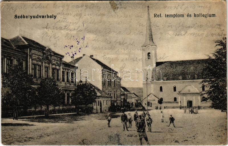 1920 Székelyudvarhely, Odorheiu Secuiesc; Református templom és kollégium. Becsek D. Fia kiadása / Calvinist church and boarding school (ázott / wet damage)