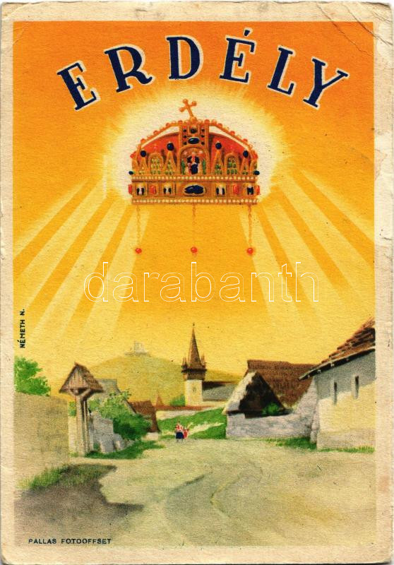 1940 Erdélyi részek visszacsatolásának emlékére. Megjöttünk testvérek! Hozzuk a szívünket, de ha kell, Erdélyért adjuk a vérünket! / entry of the Hungarian troops to Transylvania, irredenta propaganda s: Németh N. + "1940 Dés visszatért" So. Stpl. (EB)