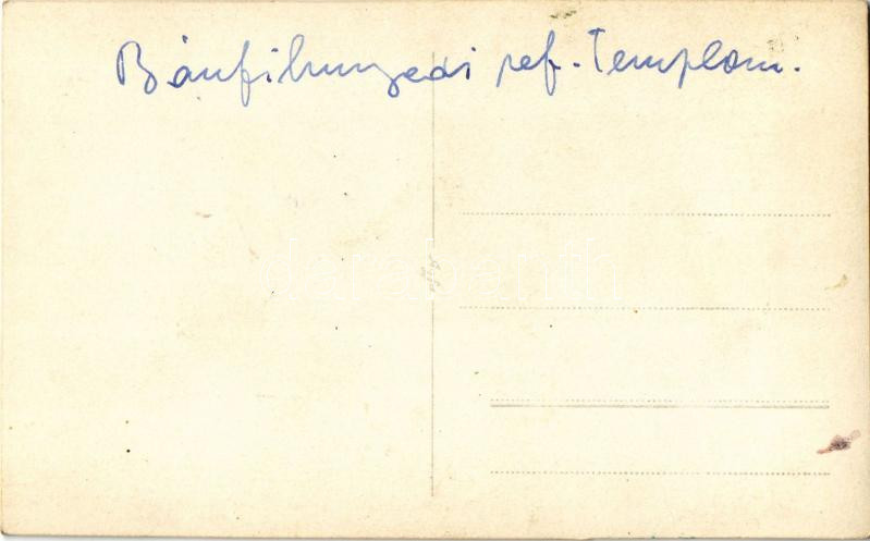 ~1935 Bánffyhunyad, Huedin; Református templom. Gross Károly (Gross Arnold édesapja) festőművész fotója és saját kezű felirata / Calvinist church. photo
