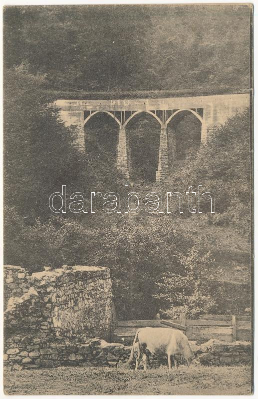 Leírás: Govasdia, Govajdia; Kaszabányai részlet, viadukt, híd. Prosek felvétele / Bania de Coase / viaduct, bridge (fa)