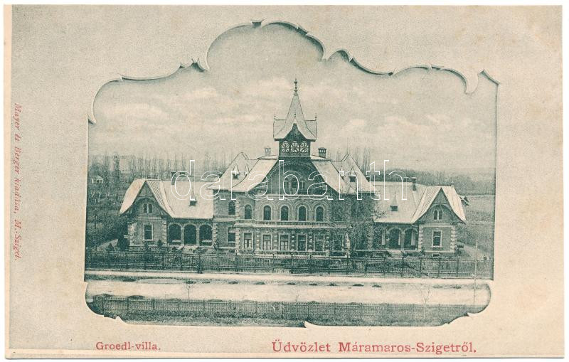 Máramarossziget, Sighet, Sighetu Marmatiei; Groedl villa. Mayer és Ber... https://www.darabanth.com/hu/448-Gyorsarveres/448.0/Kepeslapok/Erdely~1500006/Maramarossziget-Sighet-Sighetu-Marmatiei-Groedl-villa-Mayer-es-Berger-kiadasa-Art-Nouveau~II2976501