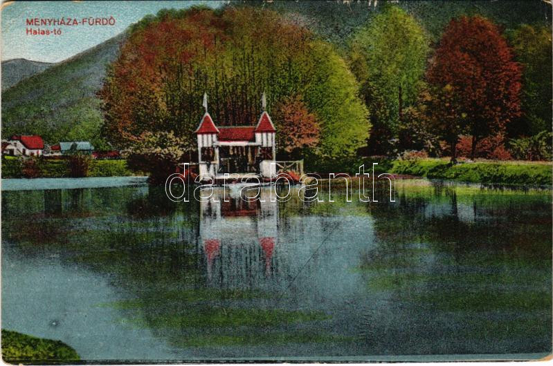 Leírás: Menyházafürdő, Monyásza, Baile Moneasa; Halastó. Illés Albert kiadása / fish pond (EK)