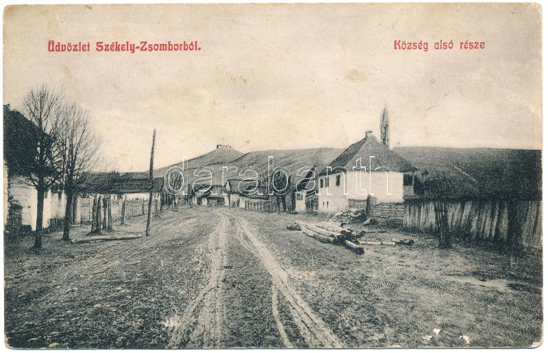 Leírás: Székelyzsombor, Zsombor, Jimbor; Község alsó része, utca / street (fl)