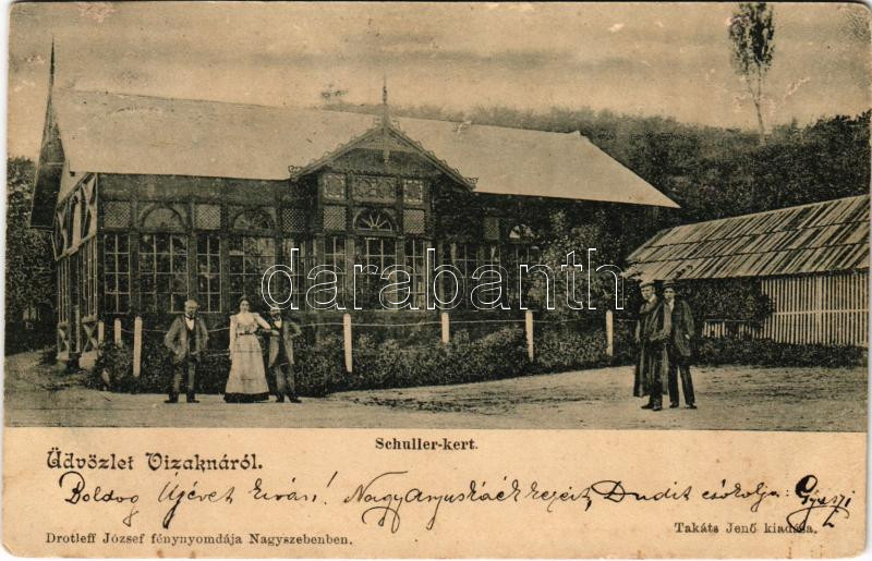 Leírás: Vízakna, Salzburg, Ocna Sibiului; Schuller kert. Drotleff József fénynyomdája és Takáts Jenő kiadása / villa garden (EK)